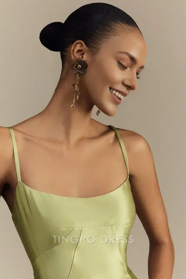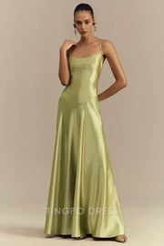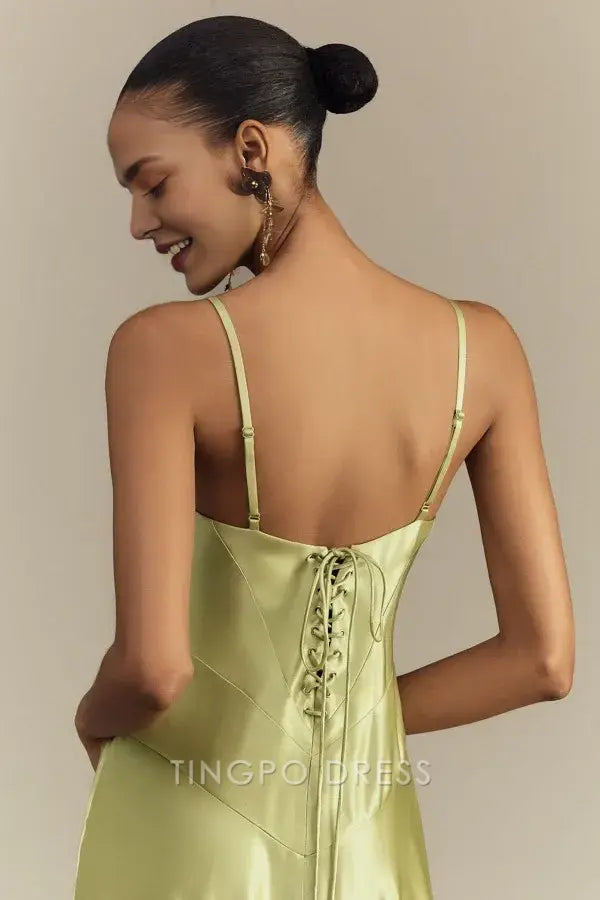 Elegant Sheath/Column Spaghetti Strap Satin Maxi Dress with Lace - Up Back Prom Dress