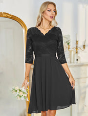 Wholesale A-Line Cocktail Dresses Vintage Dress Party Wear Cocktail Party Knee Length Half Sleeve V Neck Chiffon with Pleats - Black / US 2 / UK 6 / EU 32