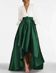 Wholesale A-Line Cocktail Wedding Guest Dress Elegant Dress Formal Prom Asymmetrical 3/4 Length Sleeve V Neck Satin with Ruched - Dark Green / US 2 / UK 6 / EU 32