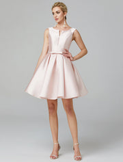 Wholesale A-Line Cute Dress Homecoming Graduation Knee Length Sleeveless V Wire Satin with Bow(s) Pleats - US 2 / UK 6 / EU 32