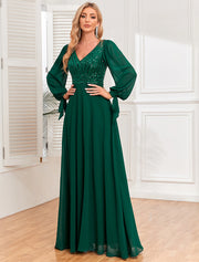 Wholesale A-Line Evening Gown Empire Dress Evening Party Wedding Reception Floor Length Long Sleeve V Neck Fall Wedding Guest Chiffon V Back with Sequin - US 2 / UK 6 / EU 32