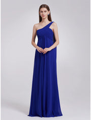 Wholesale A-Line Evening Gown Empire Dress Formal Evening Floor Length Sleeveless One Shoulder Bridesmaid Dress Chiffon Backless with Pleats Draping - As picture