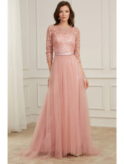 Wholesale A-Line Evening Gown Spring Dress Party Wear Formal Evening Sweep / Brush Train Long Sleeve Jewel Neck Lace with Appliques - US 2 / UK 6 / EU 32