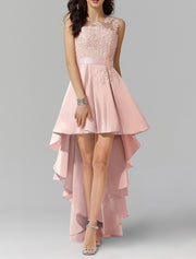 Wholesale A-Line Homecoming Dresses High Low Dress Graduation Cocktail Party Asymmetrical Sleeveless Jewel Neck Chiffon with Appliques - Pearl Pink / US 2 / UK 6 / EU 32