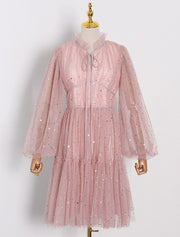 Wholesale A-Line Party Dresses Vintage Dress Homecoming Graduation Knee Length Long Sleeve High Neck Tulle with Glitter