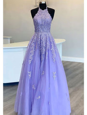 Wholesale A-Line Prom Dresses Open Back Dress Formal Prom Floor Length Sleeveless High Neck Tulle Backless with Pleats Beading Appliques