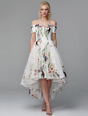 Wholesale Ball Gown Cute Dress Wedding Guest Cocktail Party Asymmetrical Short Sleeve Off Shoulder Polyester with Embroidery