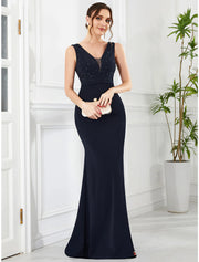 Wholesale Mermaid / Trumpet Evening Gown Glittering Dress Prom Wedding Party Floor Length Sleeveless V Neck Polyester with Belt - US 2 / UK 6 / EU 32