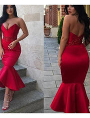 Wholesale Mermaid / Trumpet Party Dresses Backless Dress Homecoming Ankle Length Sleeveless V Neck Italy Satin Backless with Appliques