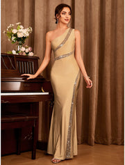 Wholesale Mermaid / Trumpet Party Dresses Sexy Dress Wedding Party Semi Formal Floor Length Sleeveless One Shoulder Stretch Satin with Glitter - US 2 / UK 6 / EU 32