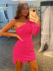 Wholesale Sheath/Column One-Shoulder Long Sleeves Short/Mini Dresses