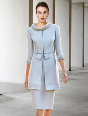 Wholesale Two Piece Sheath / Column Mother of the Bride Dress Fall Wedding Guest Church Elegant Jewel Neck Knee Length Satin Cap Sleeve Jacket Dresses with Sash / Ribbon Bow(s) Beading - US 2 / UK 6 / EU 32