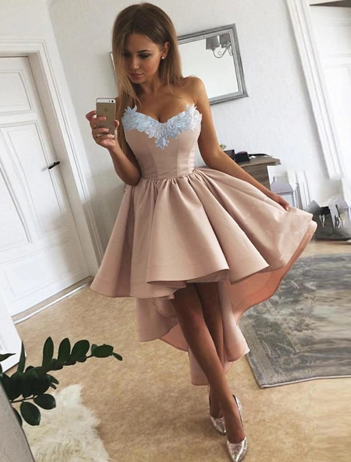 Wholesale A-Line Cocktail Dresses Minimalist Dress Homecoming Asymmetrical Sleeveless Strapless Satin with Appliques