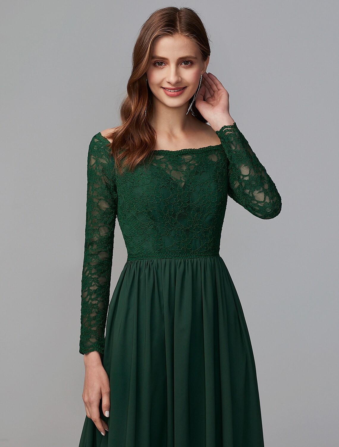 Wholesale A-Line Bridesmaid Dress Off Shoulder Long Sleeve Elegant Floor Length Chiffon / Lace with Lace