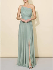 Wholesale A-Line Bridesmaid Dress One Shoulder Sleeveless Elegant Floor Length Tulle with Split Front / Ruching - US 2 / UK 6 / EU 32