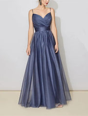 Wholesale A-Line Bridesmaid Dress V Neck Sleeveless Elegant Floor Length Tulle with Ruching - US 2 / UK 6 / EU 32