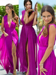 Wholesale A-Line/Princess Floor-Length 30D Chiffon Sleeveless V-neck Bridesmaid Dresses