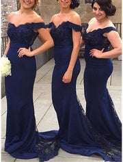 Wholesale Mermaid / Trumpet Bridesmaid Dress Off Shoulder Sleeveless Open Back Court Train Stretch Fabric with Appliques - US 2 / UK 6 / EU 32