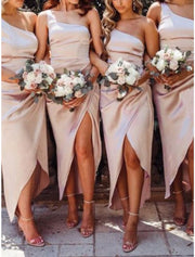 Wholesale Sheath / Column Bridesmaid Dress One Shoulder Sleeveless Elegant Ankle Length Charmeuse with Split Front / Ruching - US 2 / UK 6 / EU 32