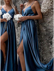 Wholesale Sheath / Column Bridesmaid Dress V Neck / Spaghetti Strap Sleeveless Elegant Sweep / Brush Train Charmeuse with Split Front - US 2 / UK 6 / EU 32