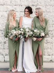 Wholesale Sheath/Column NS Elastic Woven Satin Ruched V-neck Long Sleeves Floor-Length Bridesmaid Dresses - US 2 / UK 6 / EU 32