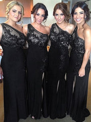 Wholesale Sheath/Column One-Shoulder Sleeveless Spandex Floor-Length Bridesmaid Dresses