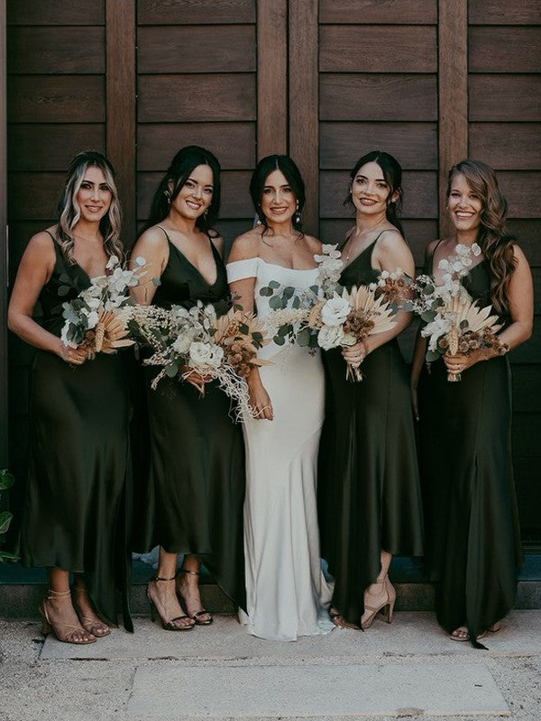 Wholesale Sheath/Column Silk like Satin Ruched V-neck Sleeveless Floor-Length Bridesmaid Dresses - US 2 / UK 6 / EU 32