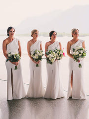 Wholesale Sheath/Column Stretch Crepe Ruched One-Shoulder Sleeveless Floor-Length Bridesmaid Dresses