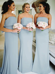 Wholesale Sheath/Column Stretch Crepe Ruffles Strapless Sleeveless Sweep/Brush Train Bridesmaid Dresses