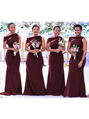 Wholesale Sheath/Column Stretch Crepe Scoop Sleeveless Sweep/Brush Train Bridesmaid Dresses