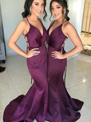 Wholesale Trumpet/Mermaid Satin Ruched V-neck Sleeveless Sweep/Brush Train Bridesmaid Dresses - US 2 / UK 6 / EU 32