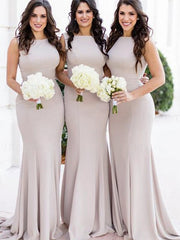 Wholesale Trumpet/Mermaid Stretch Crepe Ruffles Scoop Sweep/Brush Train Sleeveless Bridesmaid Dresses