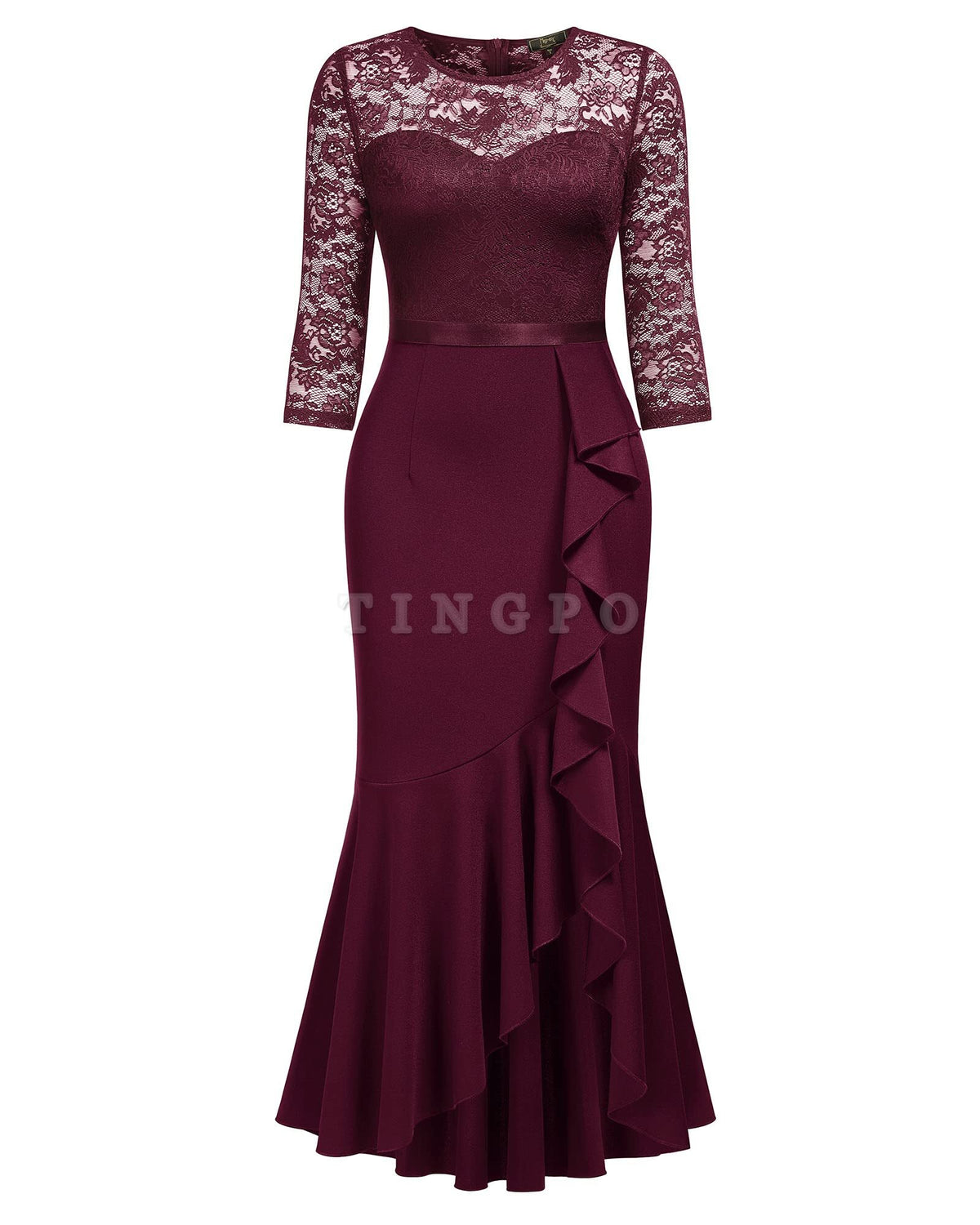 Wholesale Women's Classy Floral Lace Ruffle Formal Bridesmaid Long Dress prom dress shop - US 2 / UK 6 / EU 32