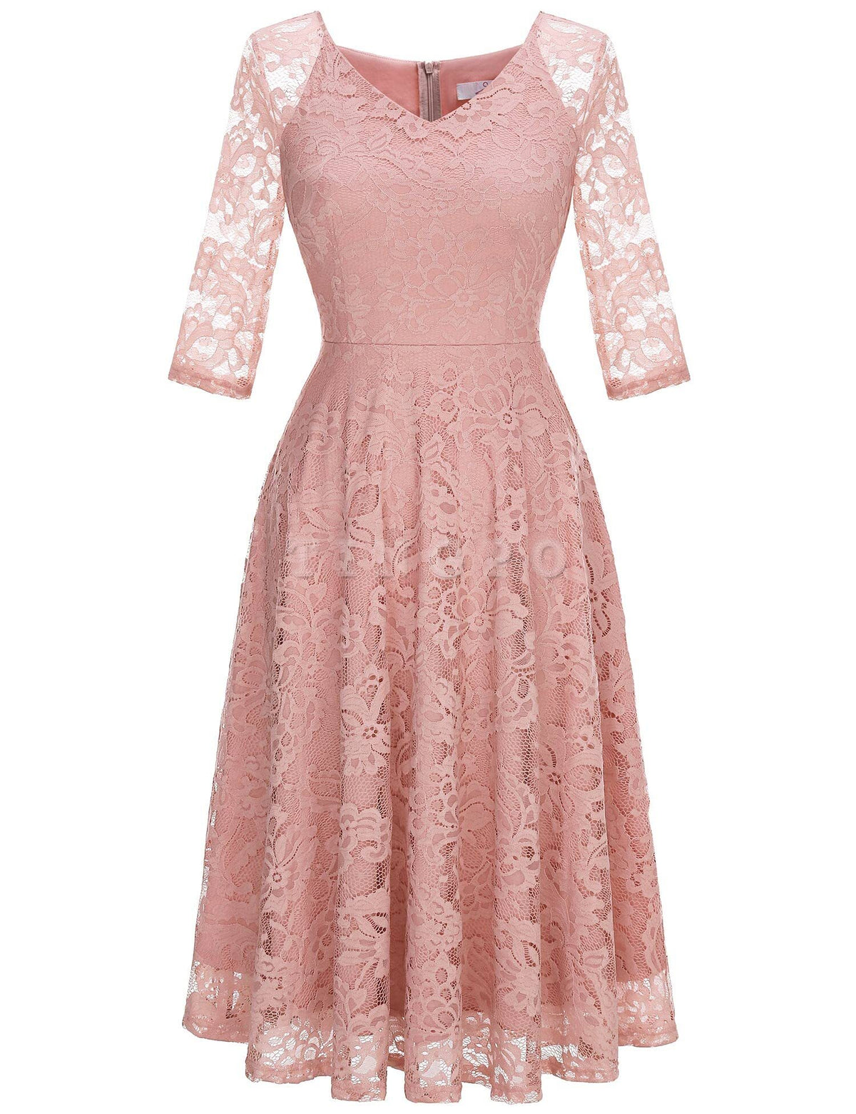 Wholesale Womens Long-Sleeve A-Line Lace Homecoming Bridesmaid Midi Dress Wedding Guest Formal Party Dresses Prom Gown prom dresses shops