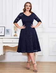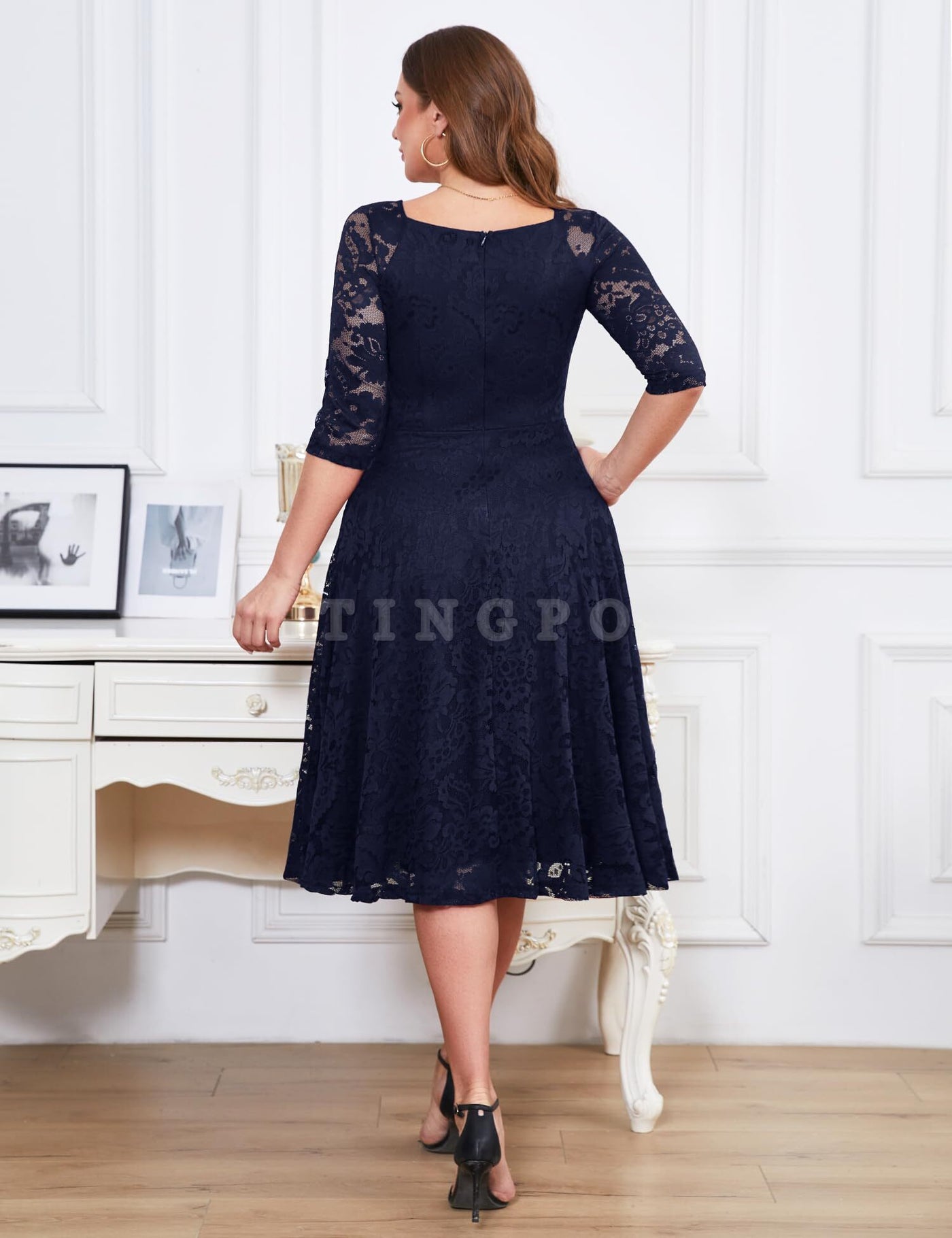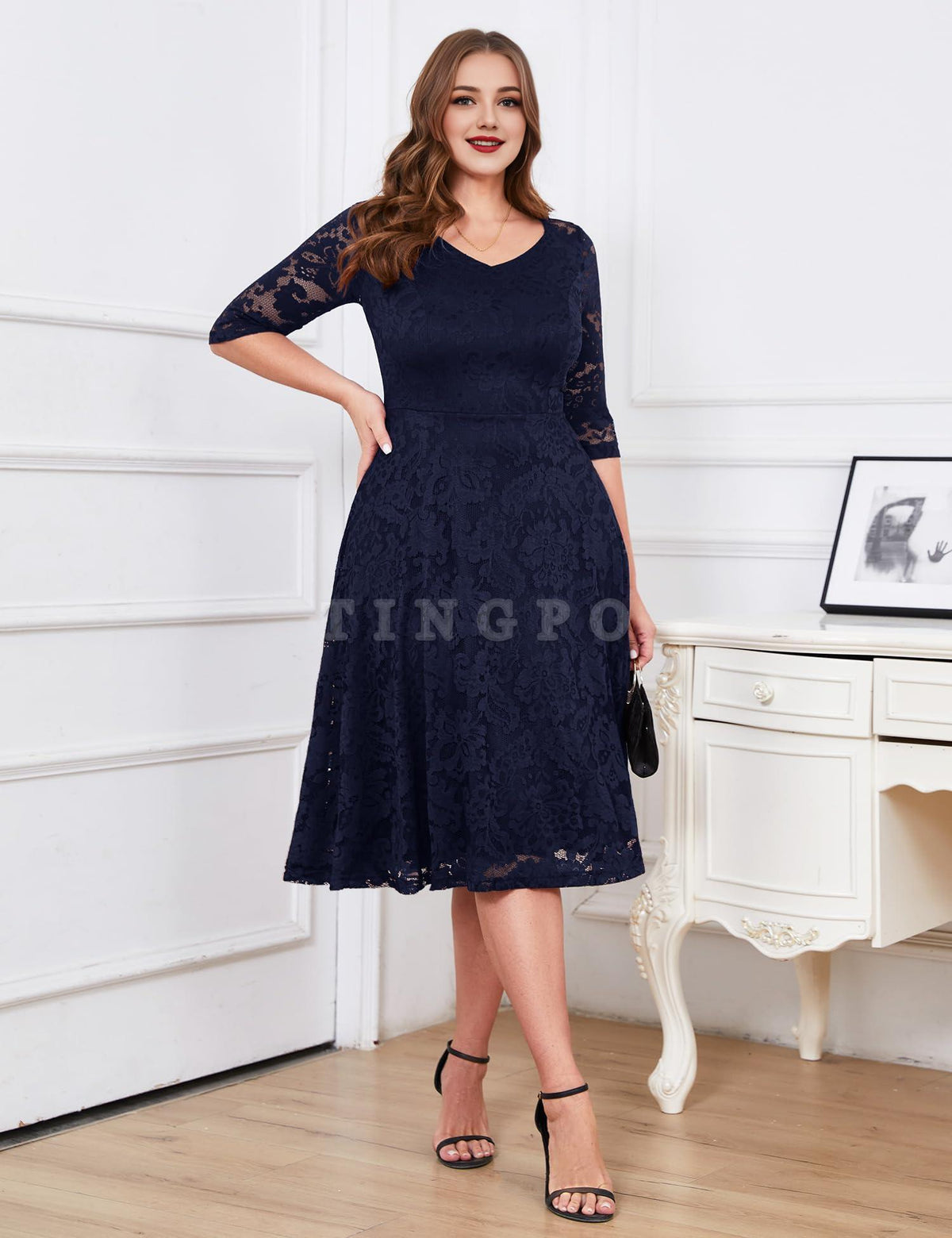 Wholesale Womens Long-Sleeve A-Line Lace Homecoming Bridesmaid Midi Dress Wedding Guest Formal Party Dresses Prom Gown prom dresses shops - Navy