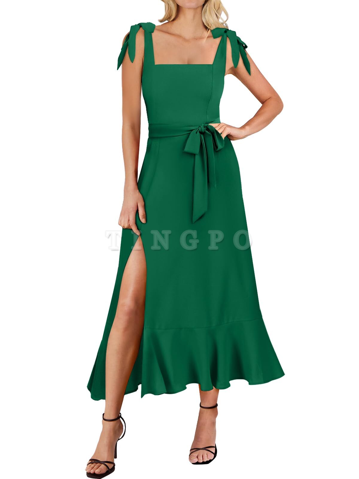 Wholesale Women's Square Neck Ruffle Split Midi Elegant Formal Wedding Guest Cocktail Bridesmaid Graduation Party Dresses prom dresses shops