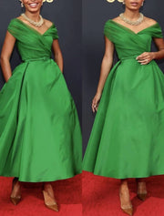 Wholesale A-Line Cocktail Dress Christmas Red Green Dresses 1950s Dress Wedding Guest Summer Ankle Length Sleeveless Off Shoulder Fall Wedding Guest Satin with Ruched - US 2 / UK 6 / EU 32