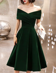 Wholesale A-Line Cocktail Dresses Black Dress Cocktail Party Prom Tea Length Short Sleeve Off Shoulder Velvet with Ruched