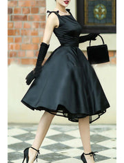 Wholesale A-Line Cocktail Dresses Elegant Dress Holiday Birthday Knee Length Sleeveless Spaghetti Strap Satin with Bow(s)