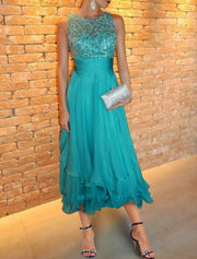 Wholesale A-Line Cocktail Dresses Elegant Dress Wedding Guest Kentucky Derby Ankle Length Sleeveless Jewel Neck Fall Wedding Guest Chiffon with Sequin Appliques