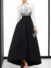 Wholesale A-Line Cocktail Dresses Elegant Dress Wedding Guest Semi Formal Asymmetrical Long Sleeve Jewel Neck Satin with Pattern / Print Splicing - US 2 / UK 6 / EU 32