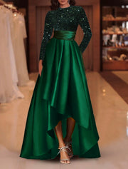 Wholesale A-Line Cocktail Dresses Sparkle Dress Christmas Red Green Dress Wedding Guest Asymmetrical Long Sleeve Jewel Neck Satin with Sequin - US 2 / UK 6 / EU 32