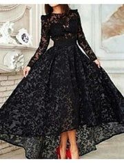 Wholesale A-Line Prom Black Dress Vintage Dress Halloween Masquerade Asymmetrical Long Sleeve Jewel Neck Wednesday Addams Family Lace with Pleats - US 2 / UK 6 / EU 32