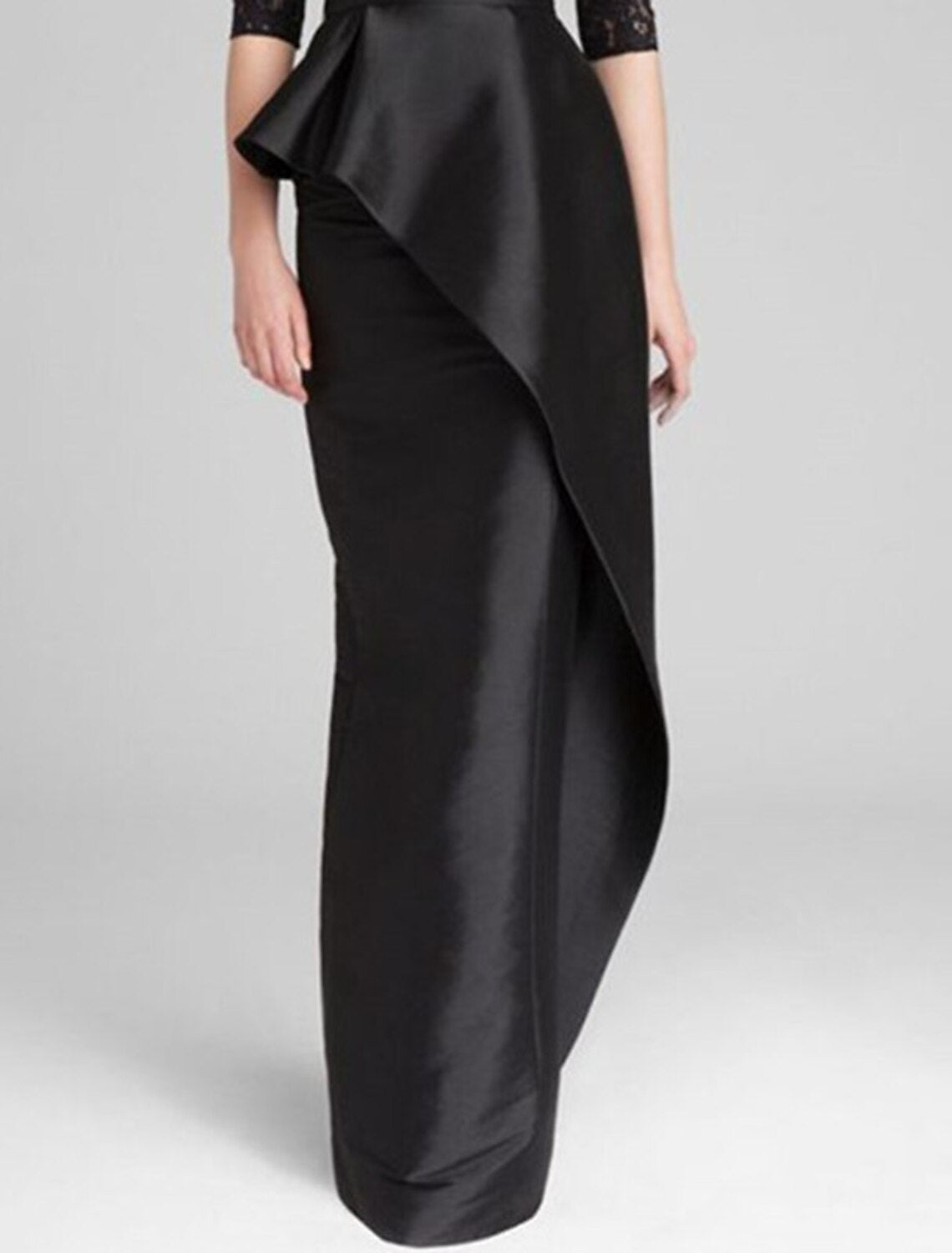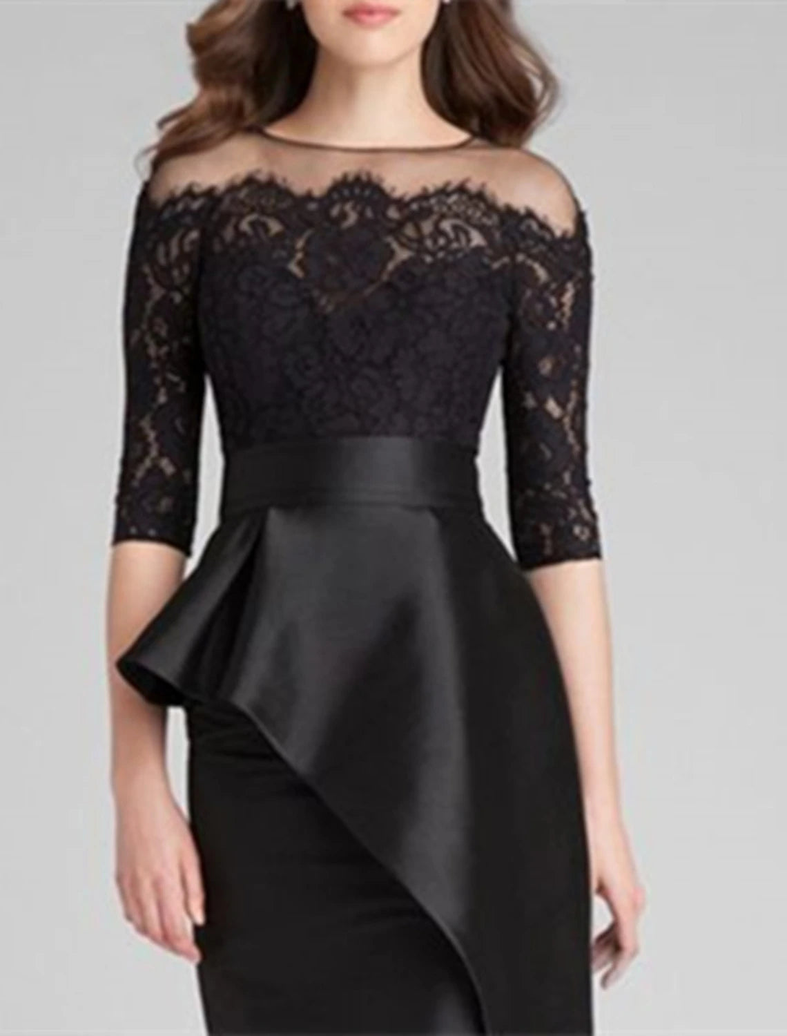 Wholesale Mermaid / Trumpet Mother of the Bride Dress Wedding Guest Simple Elegant Jewel Neck Floor Length Satin Lace Half Sleeve with Ruffles Appliques - US 2 / UK 6 / EU 32