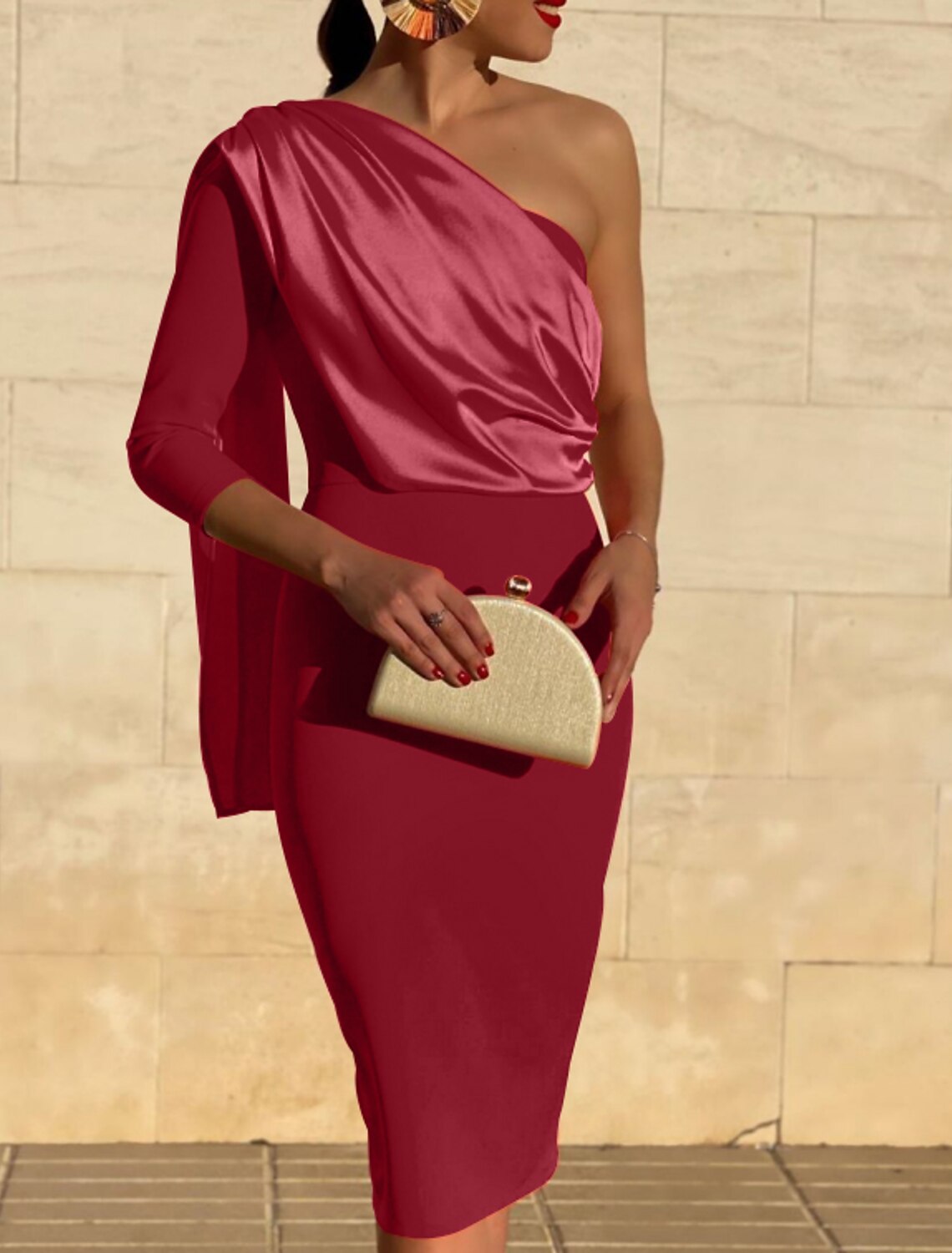 Wholesale Sheath / Column Cocktail Dresses Elegant Dress Wedding Guest Cocktail Party Knee Length 3/4 Length Sleeve One Shoulder Stretch Fabric with Draping