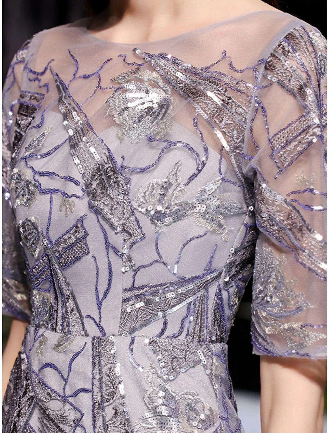 Wholesale Sheath / Column Mother of the Bride Dress Wedding Guest Party Sparkle & Shine Petite Scoop Neck Tea Length Sequined Half Sleeve with Solid Color - Light Grey / US 2 / UK 6 / EU 32