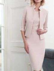 Wholesale Sheath / Column Mother of the Bride Dress Wrap Included Jewel Neck Knee Length Polyester 3/4 Length Sleeve with Beading - US 2 / UK 6 / EU 32