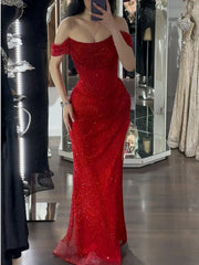 TingPo Wholesale Elegant Mermaid Off-shoulder Sequined Slim Fit Prom Dress Long Evening Dresses