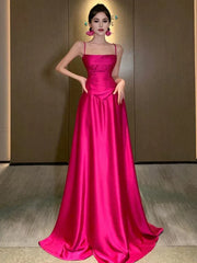 TingPo Wholesale Gorgeous A line Spaghetti Straps Hot Pink Long Evening Dress Prom Dresses Birthday Outfits