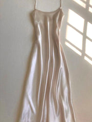 TingPo Wholesale Simple A Line Spaghetti Straps Long Silk Satin Prom Dresses Evening Dress